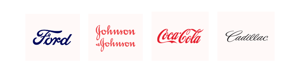 Brands that use Script: Coca-Cola, Instagram (older logo), Ford, Cadillac and Johnson & Johnson.